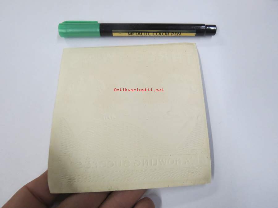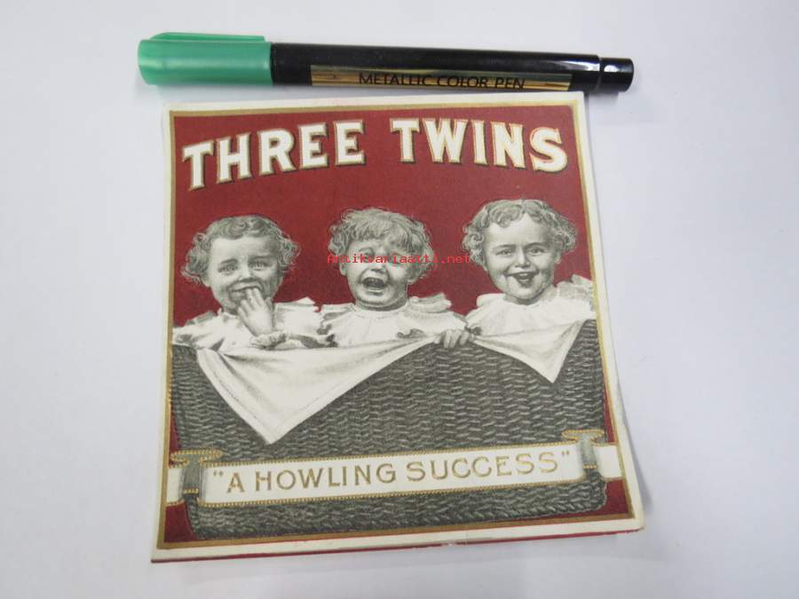 Three Twins -sikarietiketti, huomaa kohopainatus