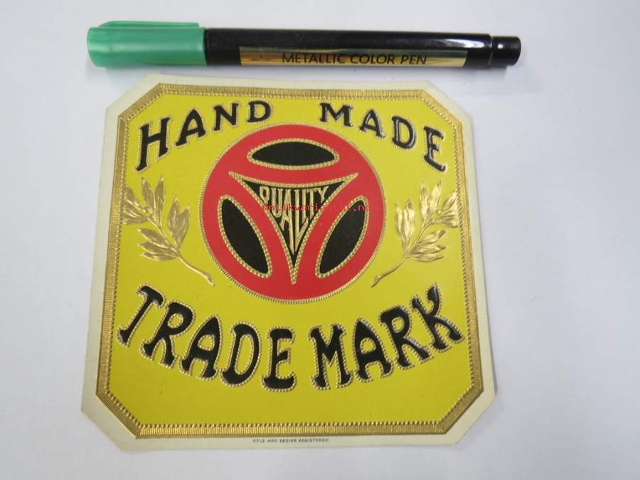 Hand Made -sikarietiketti, huomaa kohopainatus