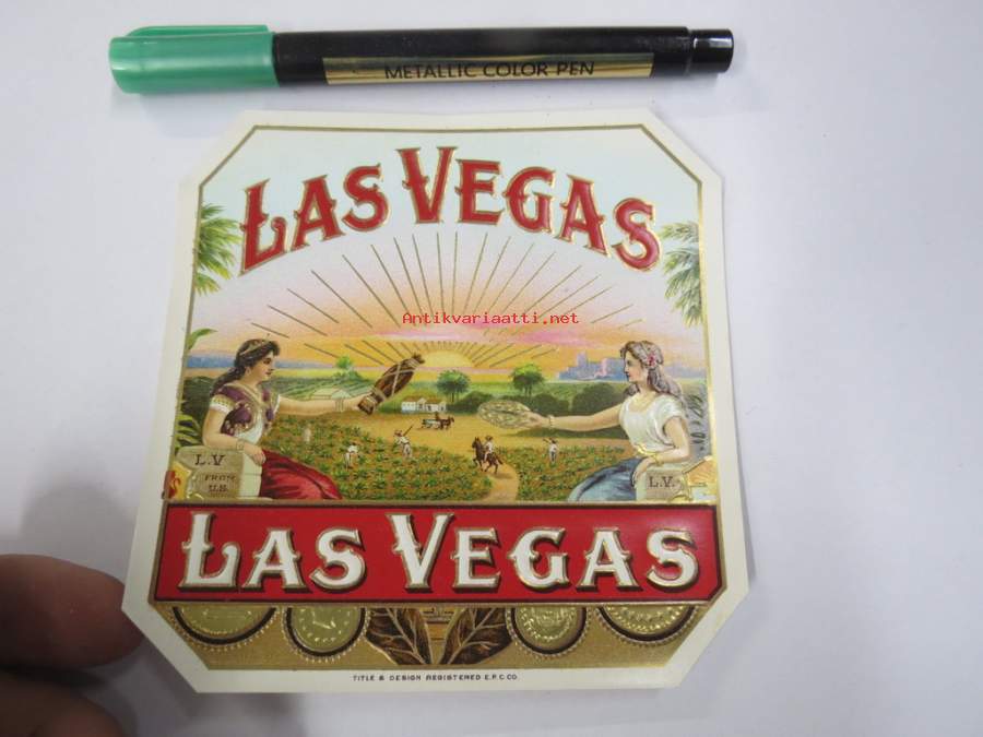 Las Vegas -sikarietiketti, huomaa kohopainatus