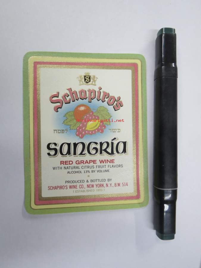 Shapiro´s Sangria - Red Grape Wine - Kosher -viinietiketti, juutalaisen perinteen mukaista viiniä