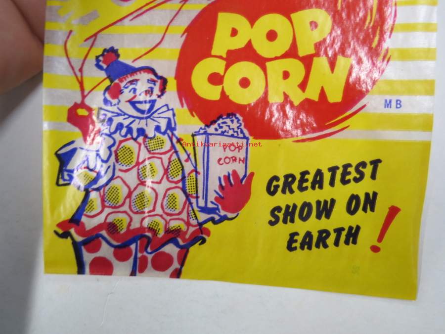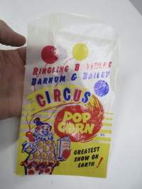 Ringling Brothers - Barnum & Bailey - Circus Pop Corn -sirkusareenalla myytyjen popkornien käyttämätön pussi 1940-luvulta