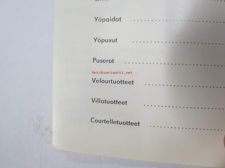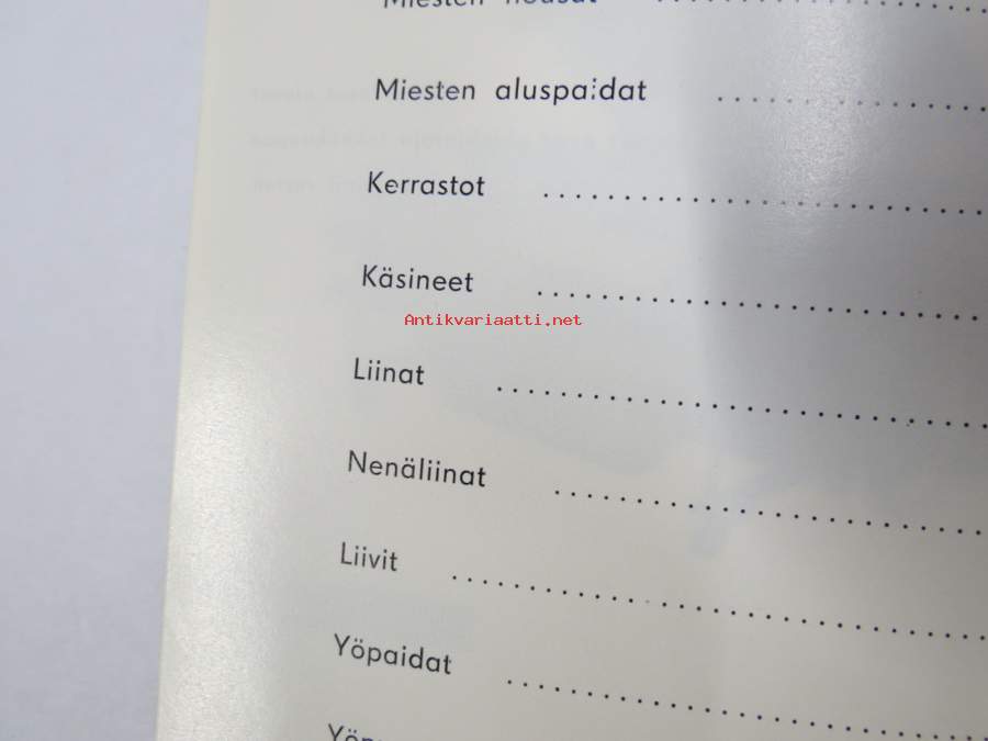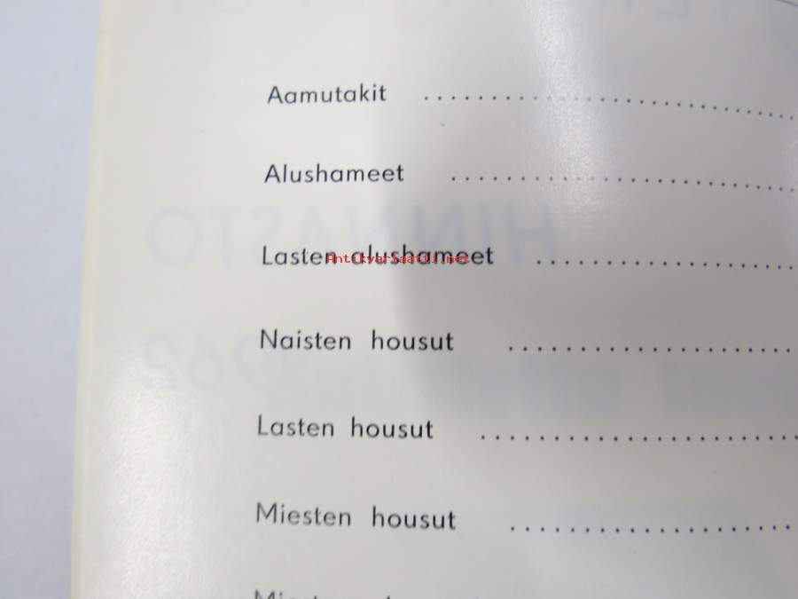 LH Tekstiili Oy hinnasto 1962 - kuvitettu vaatehinnasto