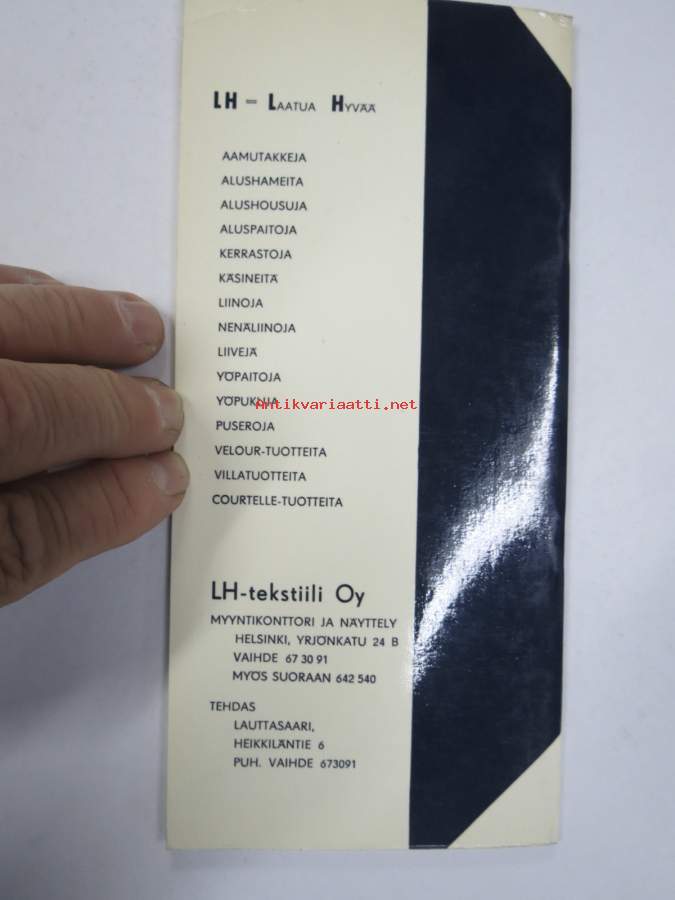 LH Tekstiili Oy, 196210 x 21 cm.