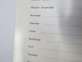 | Saatavilla | 1 kpl | | Julkaisuvuosi | 1962 | | Sivuja | 50 | | Kunto | K3 | | Sidonta/painoasu | Nidottu (pehmeäk.) | | Kielet | Suomi |