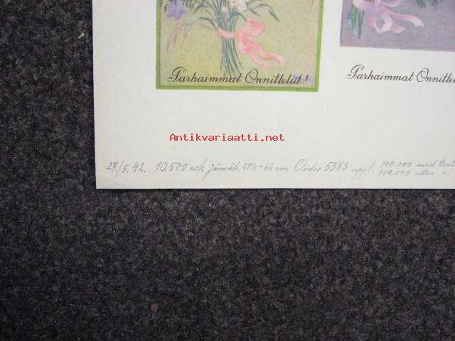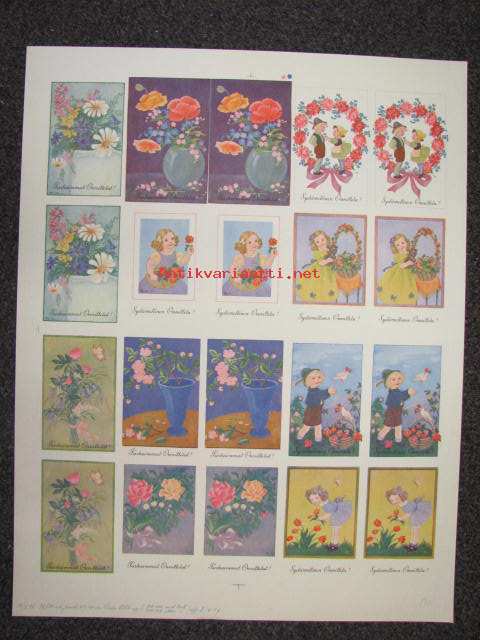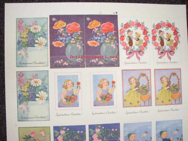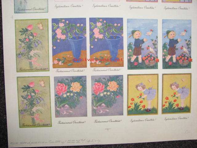Suomen Aliupseeri / Sydämellinen onnittelu -leikkaamaton korttiarkki vuodelta 1942