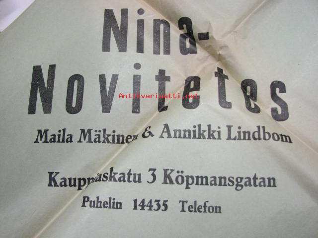 Nina Novitetes Maila Mäkinen & Annikki Lindbom -vaatekaupan paperipussi