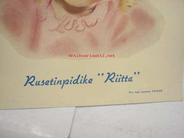 Rusetinpidike Riitta -mainostaulu, kauppojen sisämainontaplakaatti, pidettiin esim. hyllyllä tai tiskillä