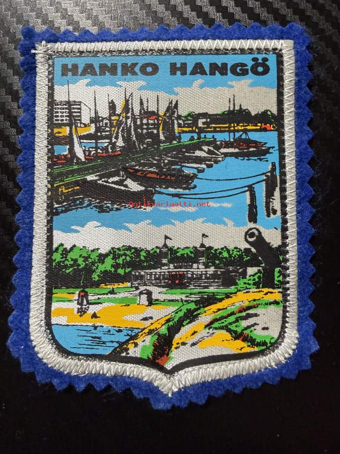 Hanko Hangö -kangasmerkki / matkailumerkki / hihamerkki / badge -pohjaväri sininen