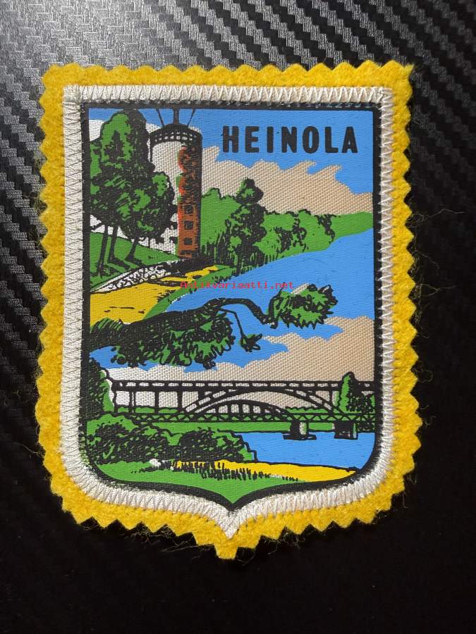 Heinola -kangasmerkki / matkailumerkki / hihamerkki / badge -pohjaväri keltainen