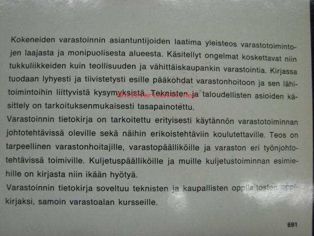 | Saatavilla | 1 kpl | | Julkaisuvuosi | 1971 | | Sivuja | 189 | | Painos | 1. | | Kunto | K3 | | Sidonta/painoasu | Sidottu (kansipaperit) | | Kielet | Suomi |