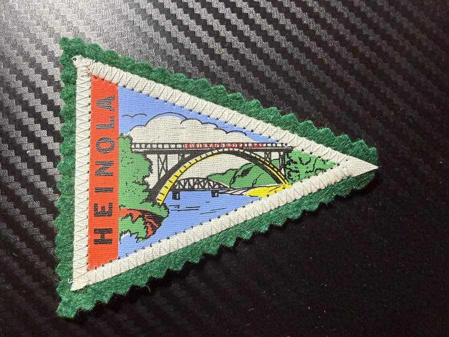 Heinola -kangasmerkki / matkailumerkki / hihamerkki / badge -pohjaväri vihreä