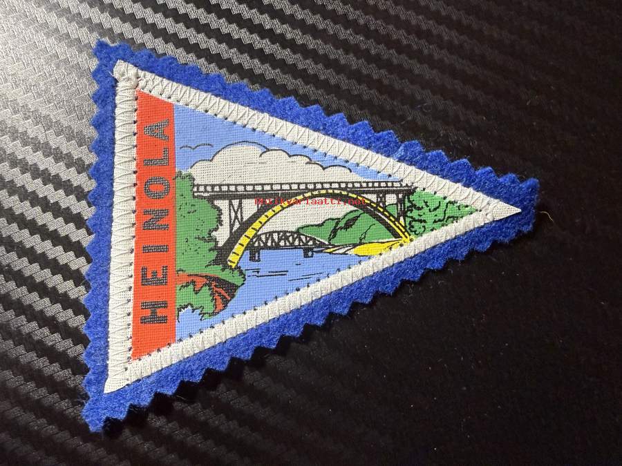 Heinola -kangasmerkki / matkailumerkki / hihamerkki / badge -pohjaväri sininen