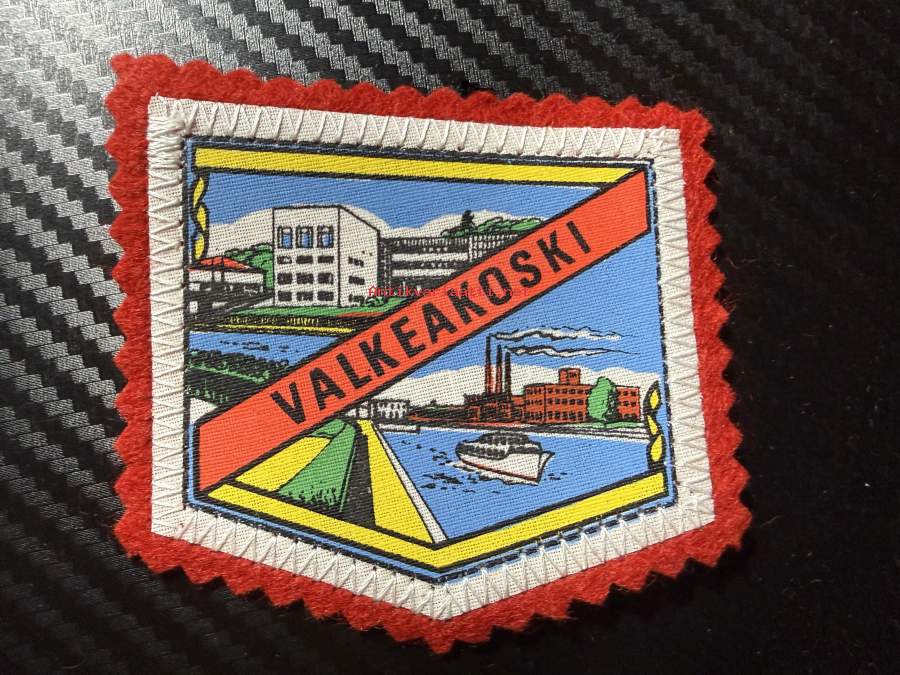 Valkeakoski -kangasmerkki / matkailumerkki / hihamerkki / badge -pohjaväri punainen