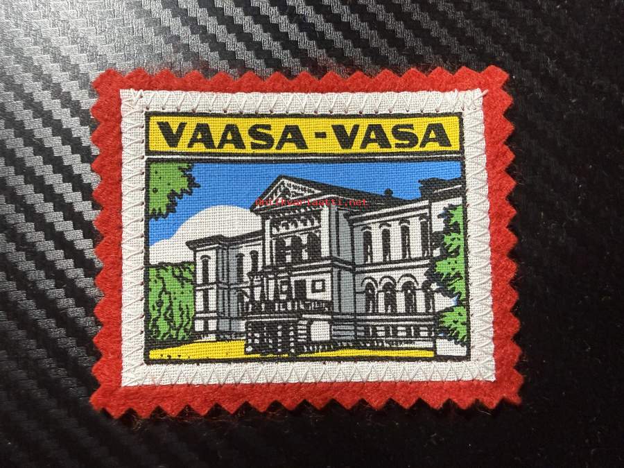 Vaasa - Vasa -kangasmerkki / matkailumerkki / hihamerkki / badge -pohjaväri punainen