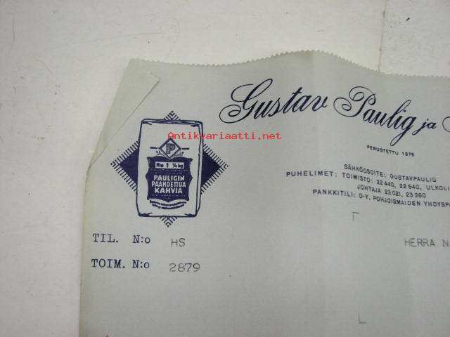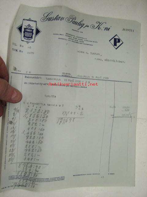 Gustav Paulig ja Kni, Helsinki / Niilo Tunturi, Turku, 31.12.1929 -asiakirja