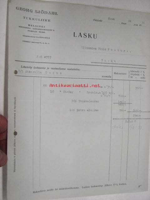 Georg Sjödahl, Helsinki / Niilo Tunturi, Turku, 11.6.1930 -asiakirja
