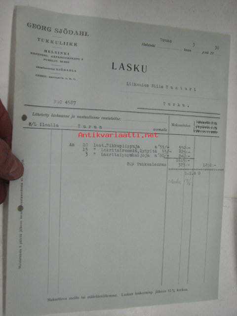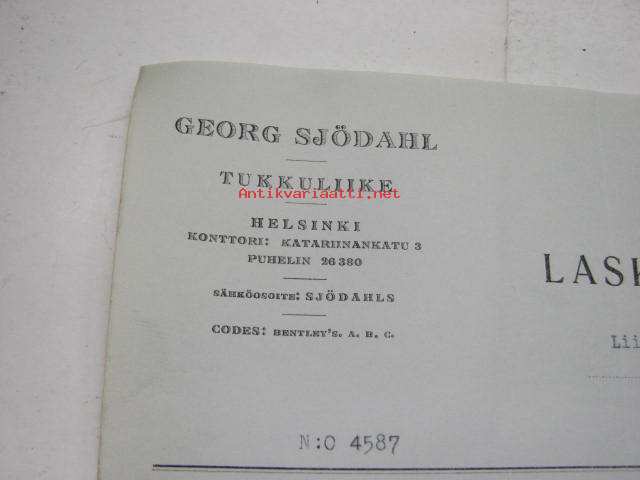 Georg Sjödahl, Helsinki / Niilo Tunturi, Turku, 3.5.1930 -asiakirja