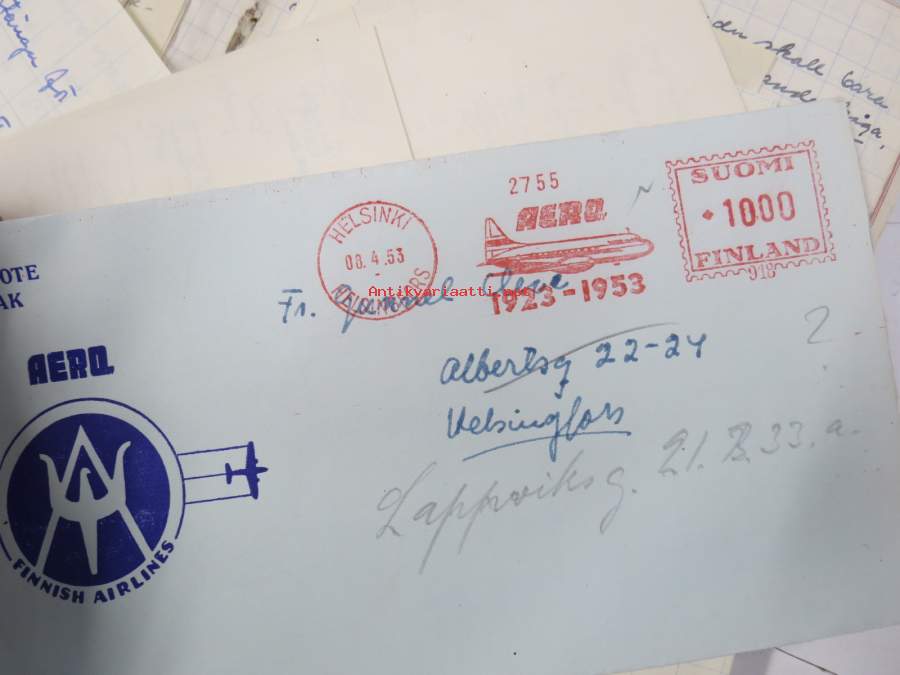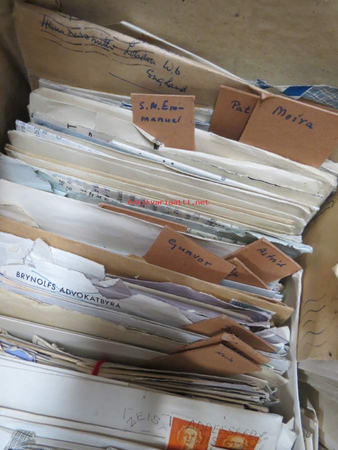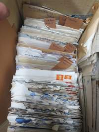 Laatikollinen, kirjeitä lienee usempi sata, ovat erikielisiä.