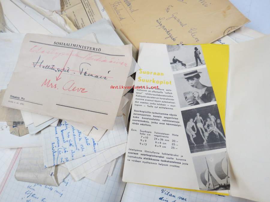 Gunnel Lehtinen-Cleven (& Fredric Cleve) vastaanottamia kirjeitä, papereita - lippusia ja lappusia, isohko erä sukuhistoriaa pitkähköltä ajanjaksolta