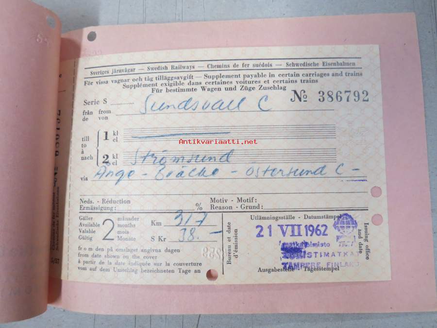 SJ (Statens Järnvägar) Sundsvall - Strömsund -matkalippuvihko, Turistimatkat Oy