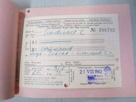 | Saatavilla | 1 kpl | | Julkaisuvuosi | 1962 | | Kunto | K3 | | Sidonta/painoasu | Pienpainate | | Kielet | Suomi, Ruotsi |