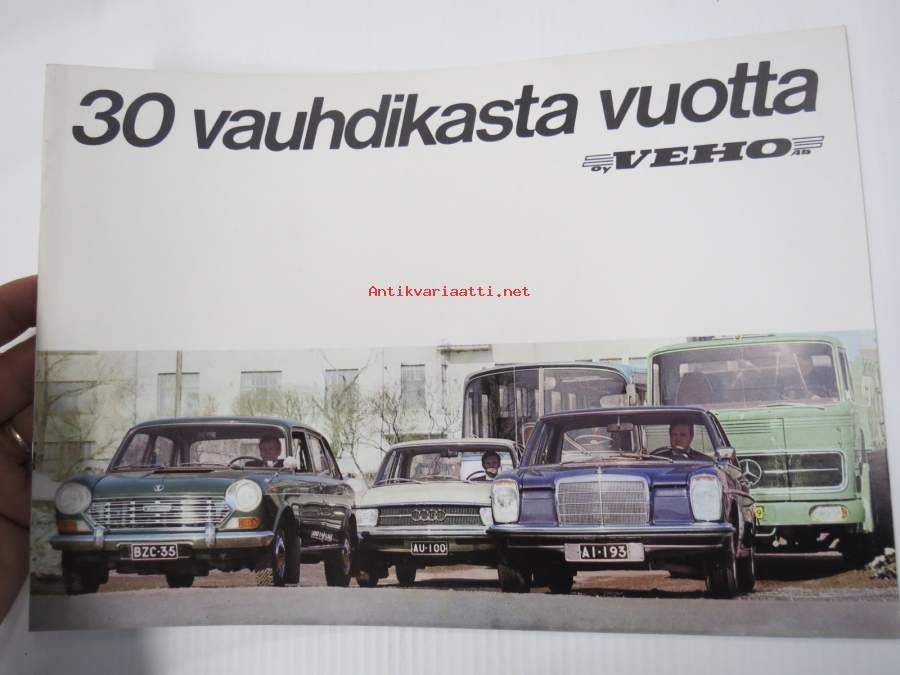 Veho Oy 30 vauhdikasta vuotta - Vehon automyynnin historiikki, hyvä kuvitus, sisältää asiaa merkeistä Austin, Mercedes-Benz, Unimog, Audi.