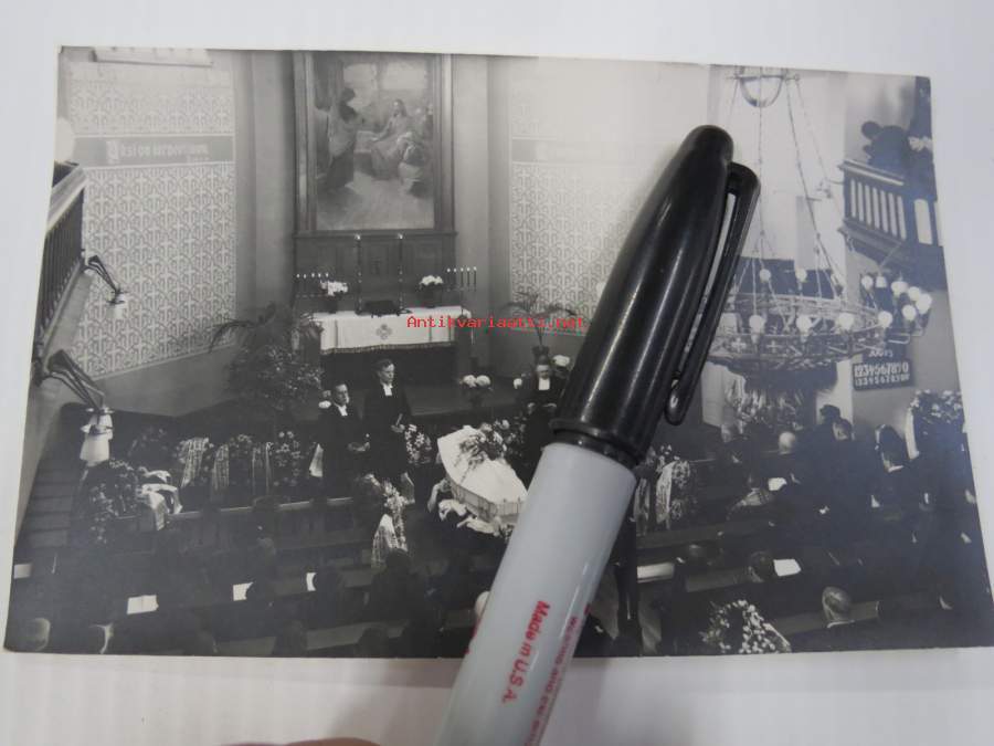 Hautajaiset, arkku alttarilla -valokuva