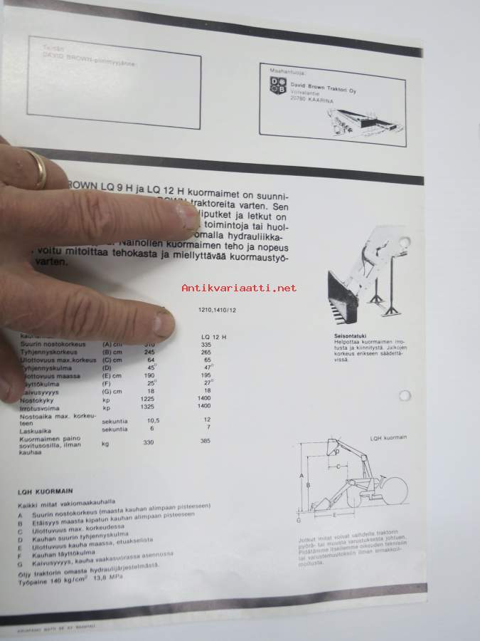 David Brown traktorikuormain LQ H/990-996, LQ 12 H/1210 - 1410 - 1412 -myyntiesite