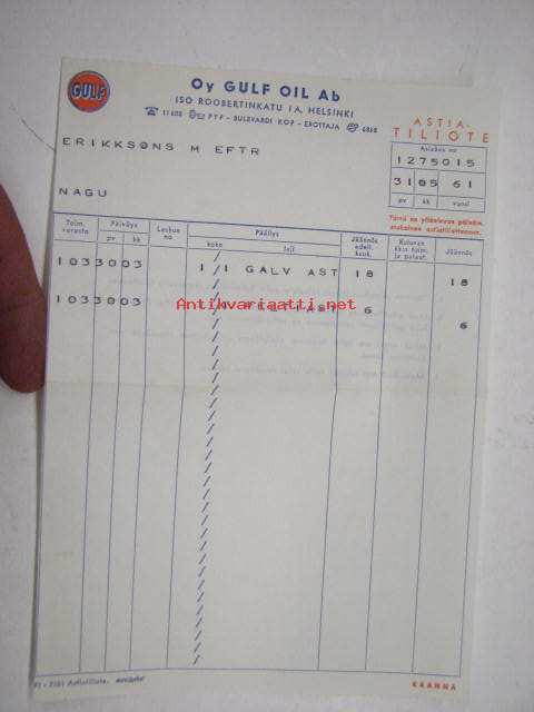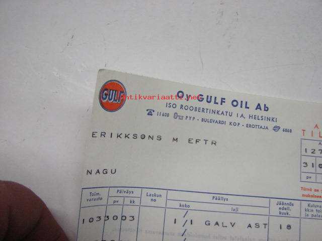 Oy Gulf Oil Ab -astiatiliote 31.5.1961