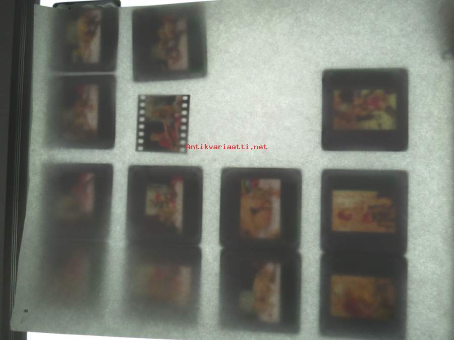 Eroottinen valokuvasarja, 14 diakuvaa, hankittu kansainvälisiltä kuvatoimistoilta käytettäväksi kotimaisten miestenlehtien artikkelien / juttujen kuvituksena