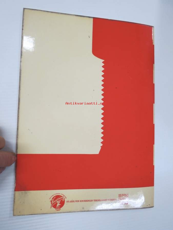 | Saatavilla | 1 kpl | | Julkaisuvuosi | 1958? | | Sivuja | 24 | | Kunto | K3 | | Sidonta/painoasu | Nidottu (pehmeäk.) | | Kielet | Suomi |