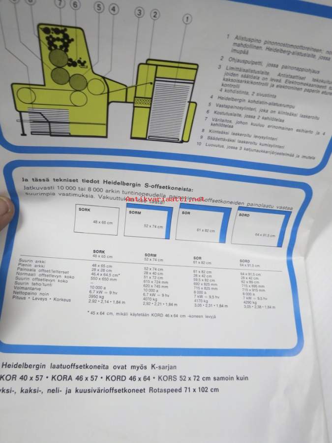 Heidelberg SORK & SORM pikakoneet (offset kirjapainokone) -myyntiesite