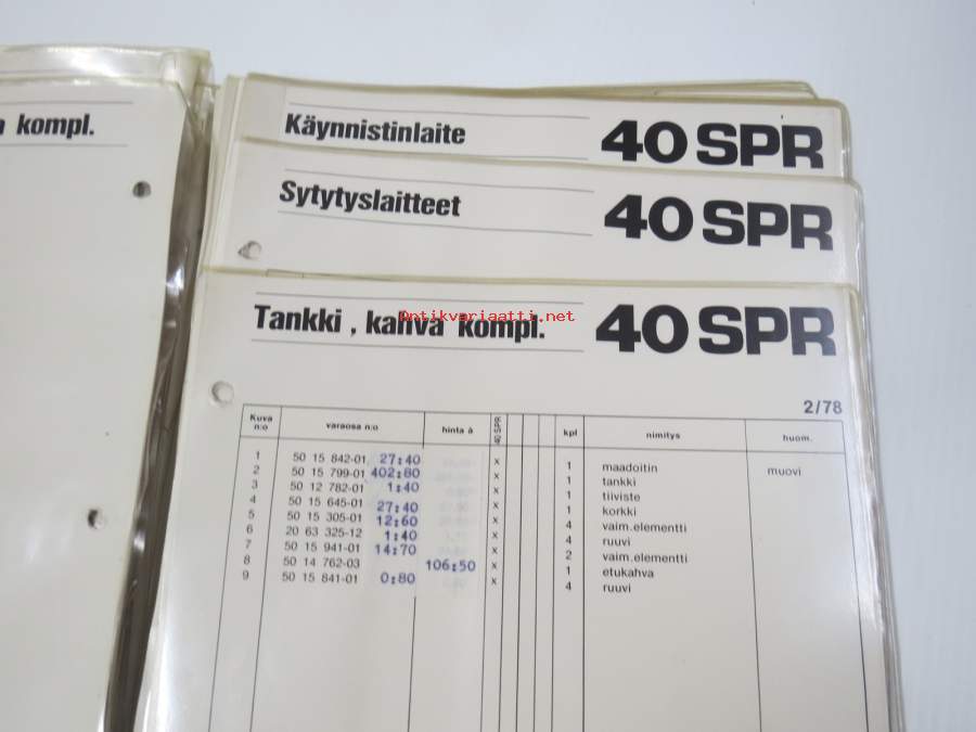 Husqvarna 240, 340, 40 SPR, 2.1978 -Reservdelar / Spare Parts -varaosaluettelot