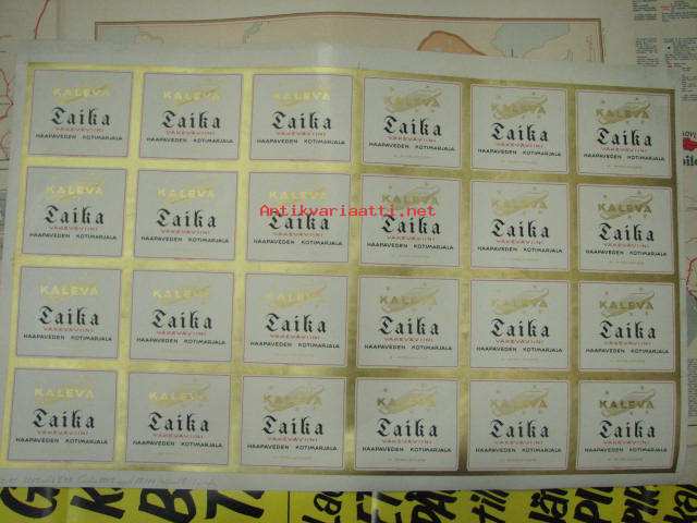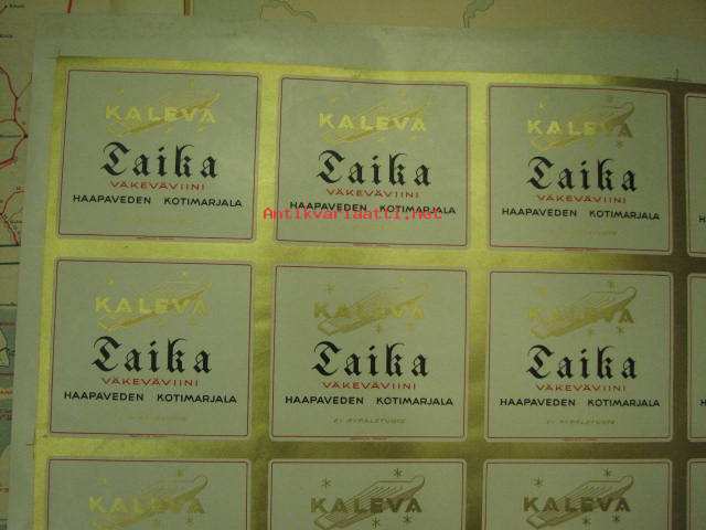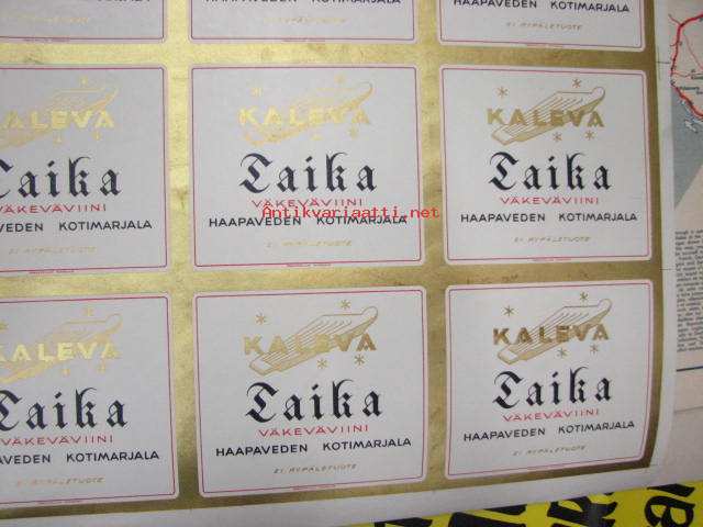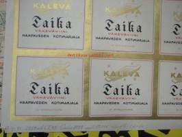 Kaleva / Taika Väkevä kotiviini - Haapaveden Kotimarjala -leikkaamaton etikettiarkki vuodelta 1941