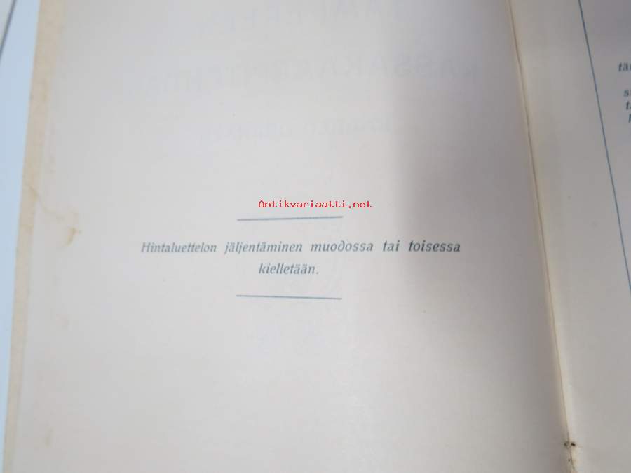 | Saatavilla | 1 kpl | | Julkaisuvuosi | 1909 | | Sivuja | 29 | | Painos | 1. | | Kunto | K2 | | Sidonta/painoasu | Nidottu (pehmeäk.) | | Kielet | Suomi |