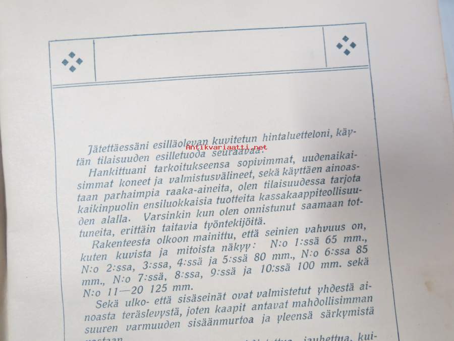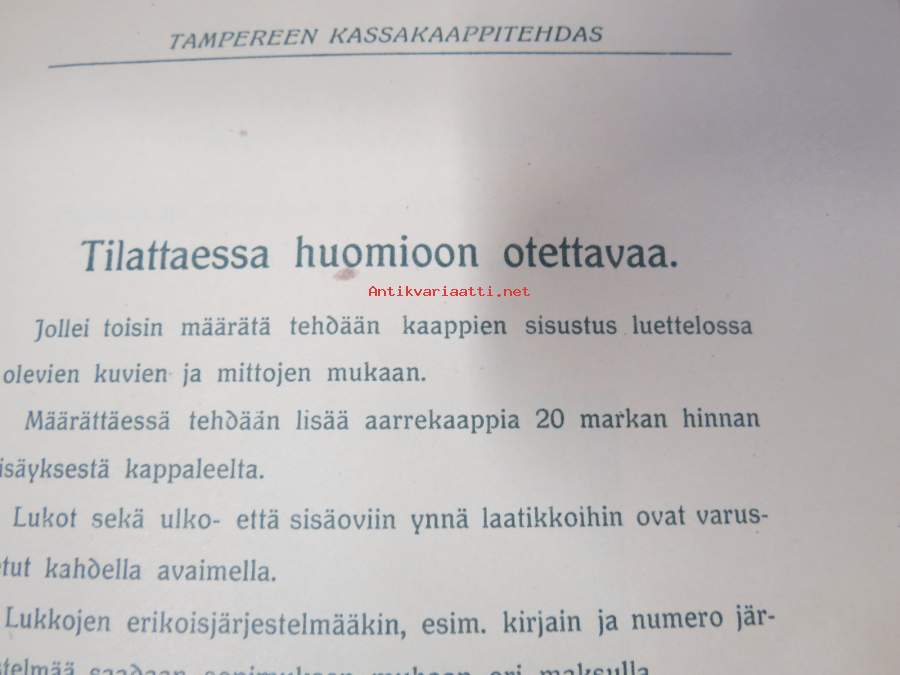 Tampereen Kassakaappitehdas, 190915 x 23 cm.