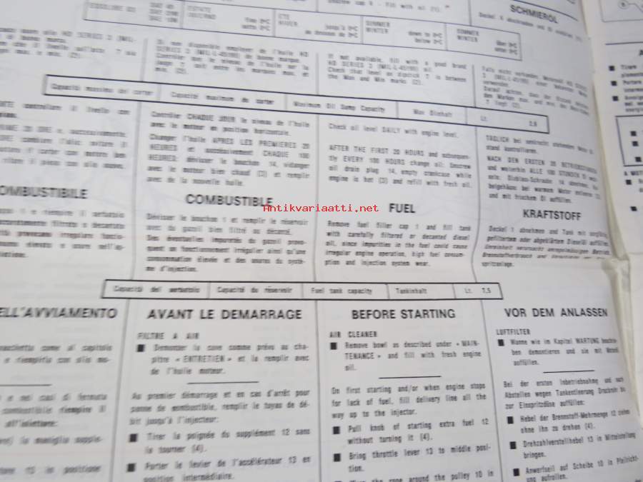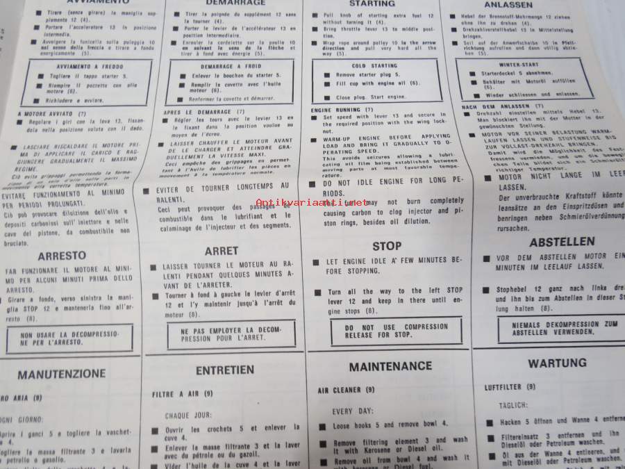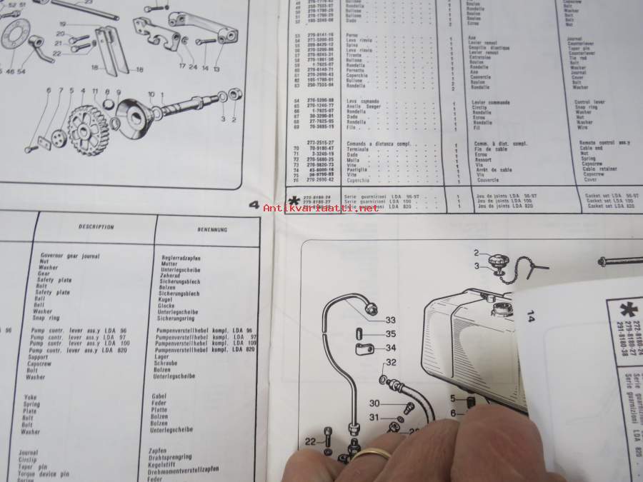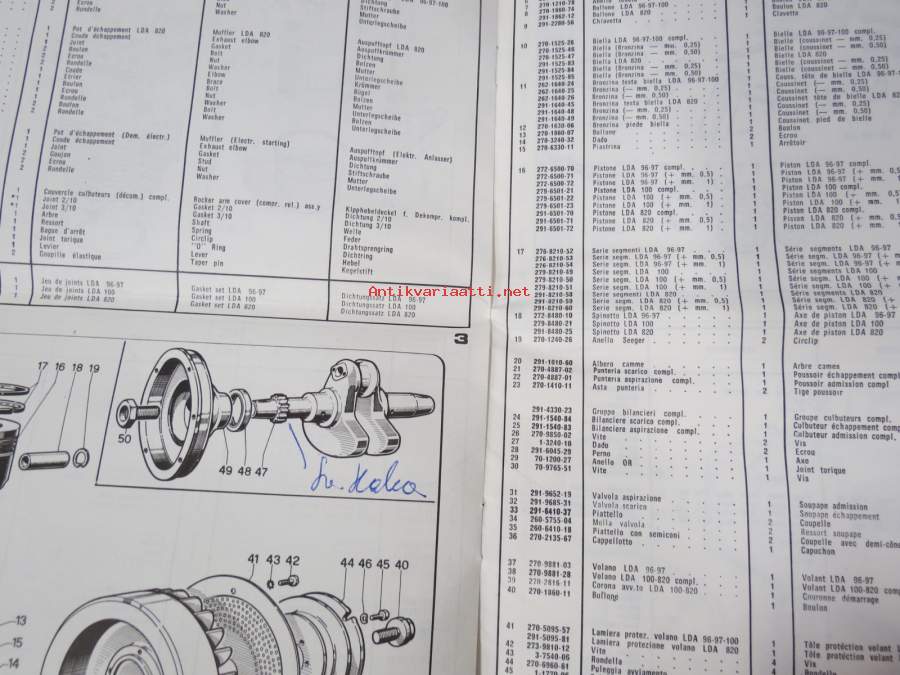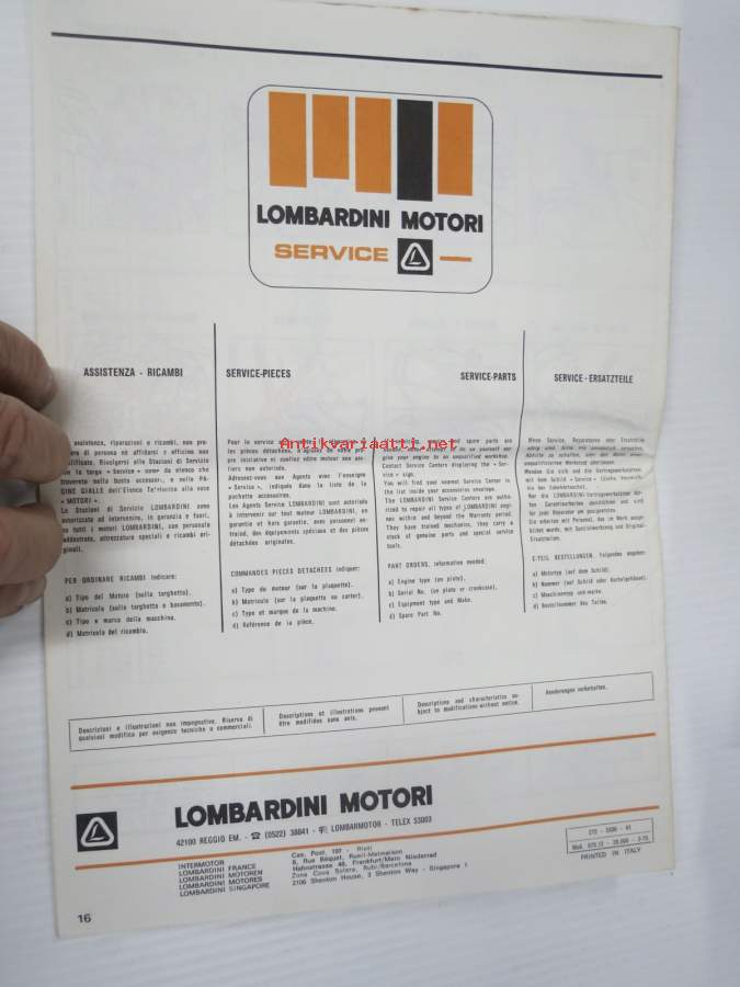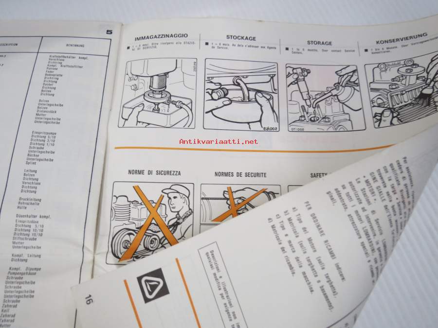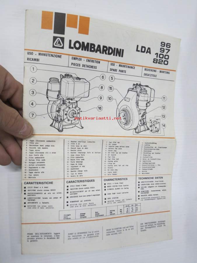 Lombardini LDA 96, 97, 100, 820 Uso - Manutenzioni / Use & Maintenance - Spare Parts / Bedienung - Wartung - Erzarzteile / Emploi -käyttöohjekirja + varaosaluettelo