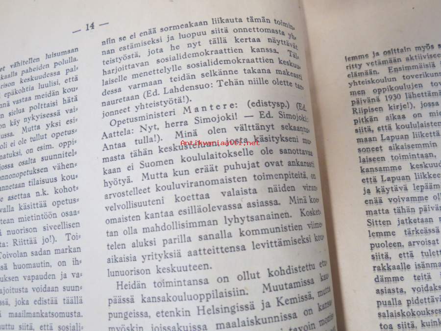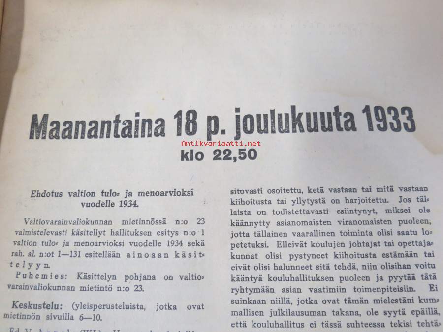 Mitä Eduskunnassa puhutaan sarja II.2 - Eduskunnassa joulukuulla 1933 käyty keskustelu koululaisten politikoinnista