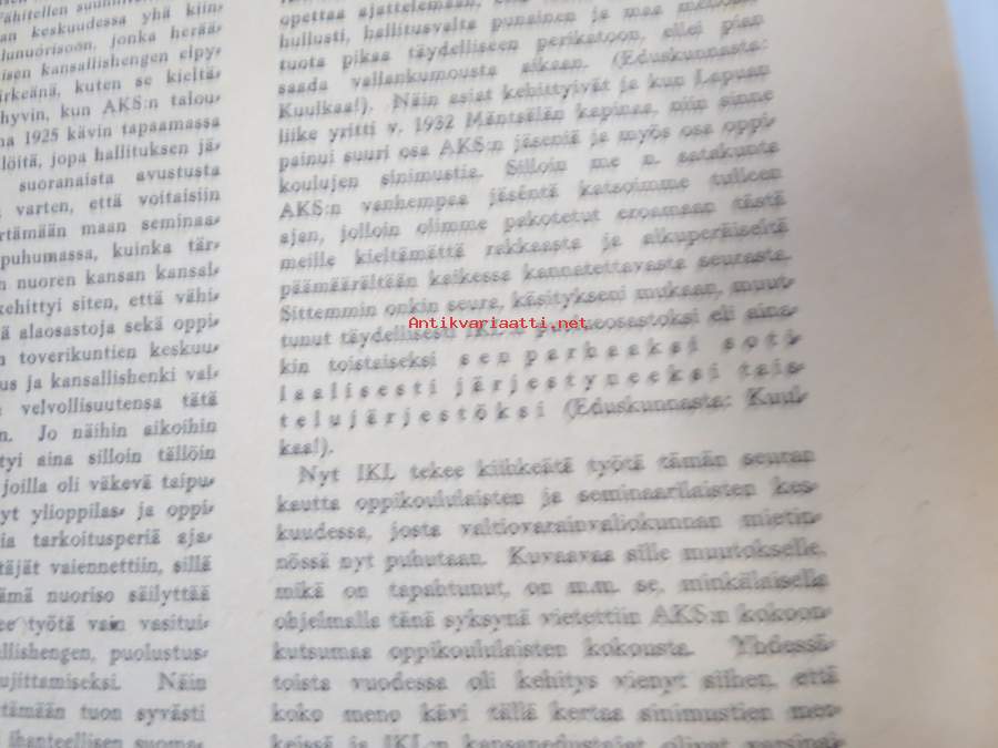 | Saatavilla | 1 kpl | | Julkaisuvuosi | 1934 | | Sivuja | 32 | | Kunto | K3 | | Sidonta/painoasu | Nidottu (pehmeäk.) | | Kielet | Suomi |