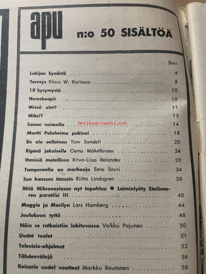 Apu 1964 nr 50, Marilyn Monroe, Tampereella on murhaaja