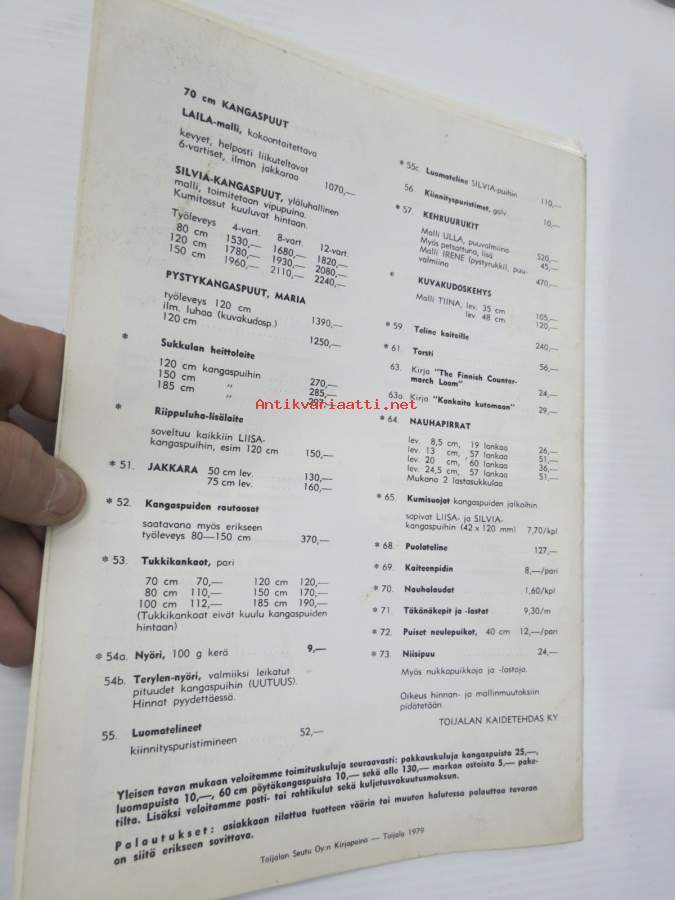 Toika - Toijalan Kaidetehdas - Kutomavälineiden hinnasto 1/1979 -tuoteluettelo