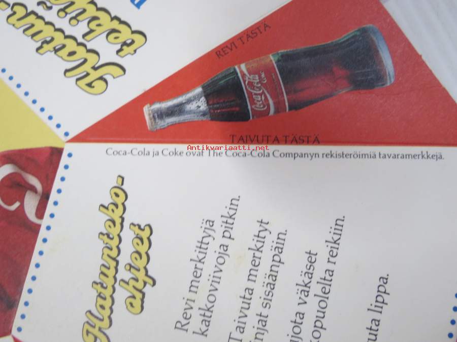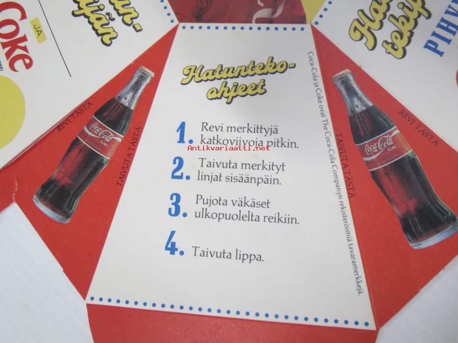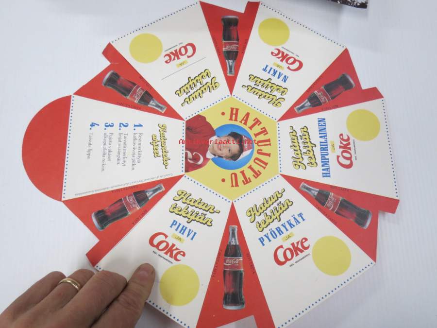 Coca-Cola / Coke Hattujuttu -hampurilaisravintolassa jaettu "kylkiäinen", josta saattoi taitella hatun