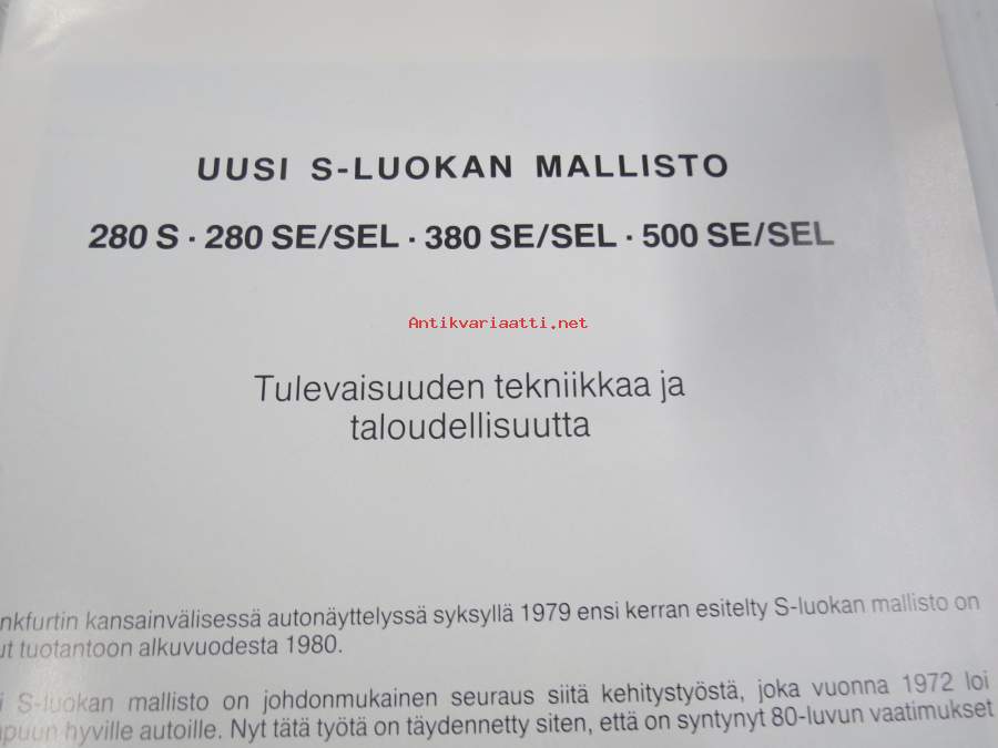 Mercedes-Benz Verkaufsinformation 1979 - Uusi S-Luokka 280 S / SE / SEL, 380 SE/SEL, 500 SE/SEL -luottamuksellinen, vain MB-markkinointiorganisaatiossa toimiville