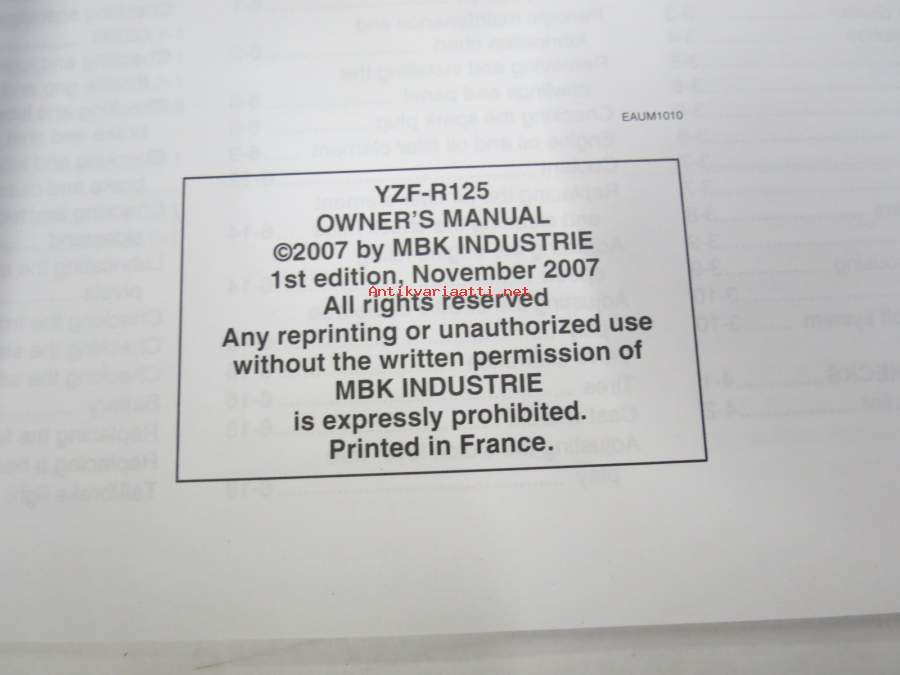 Yamaha YZF-R125 Owner´s manual -moottoripyörä, käyttöohjekirja englanniksi