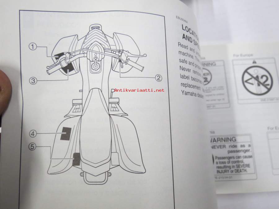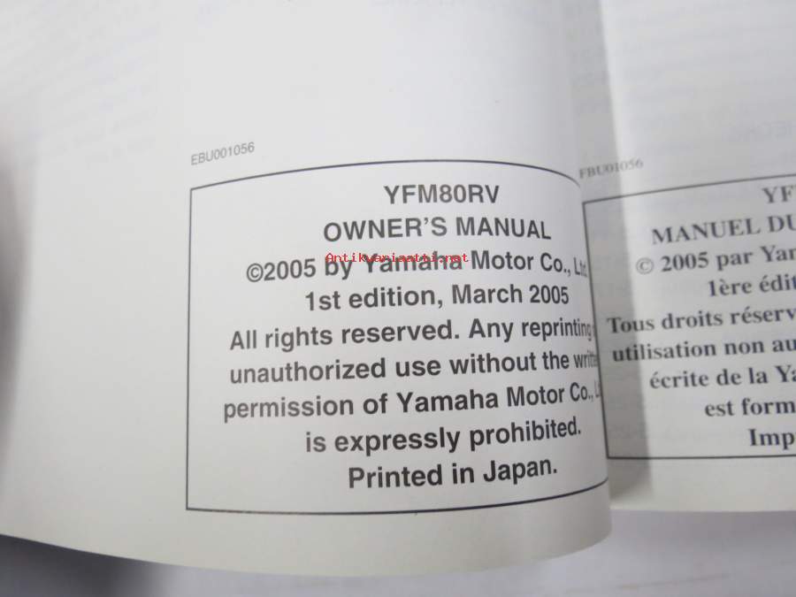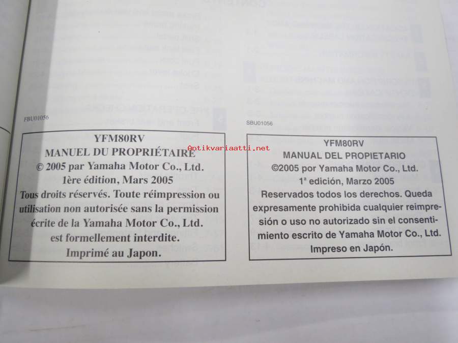 Yamaha YFM80RV Owner´s manual, Manuel du proprietaire, Manual del propietario -moottoripyörä, käyttöohjekirja englanniksi, italiaksi, espanjaksi