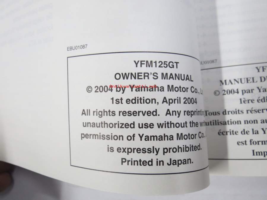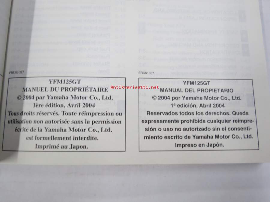 Yamaha Grizzly 125 YFM125GT Owner´s manual, Manuel du proprietaire, Manual del propietario -mönkijä, käyttöohjekirja englanniksi, italiaksi, espanjaksi