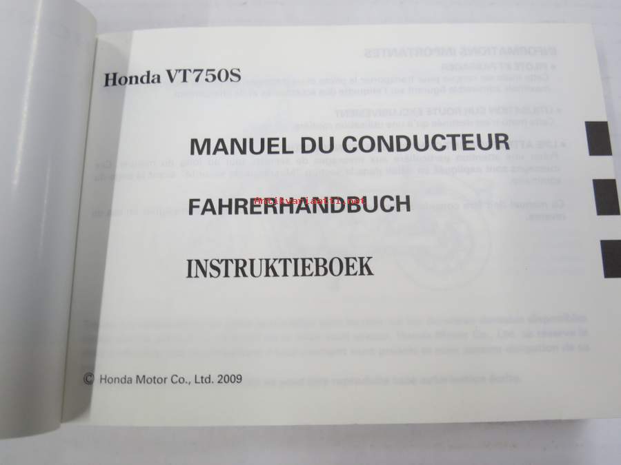 Honda VT750S Manuel du conducteur, Fahrerhandbuch, Instruktiebok -moottoripyörä, käyttöohjekirja ranska, saksa, hollanti