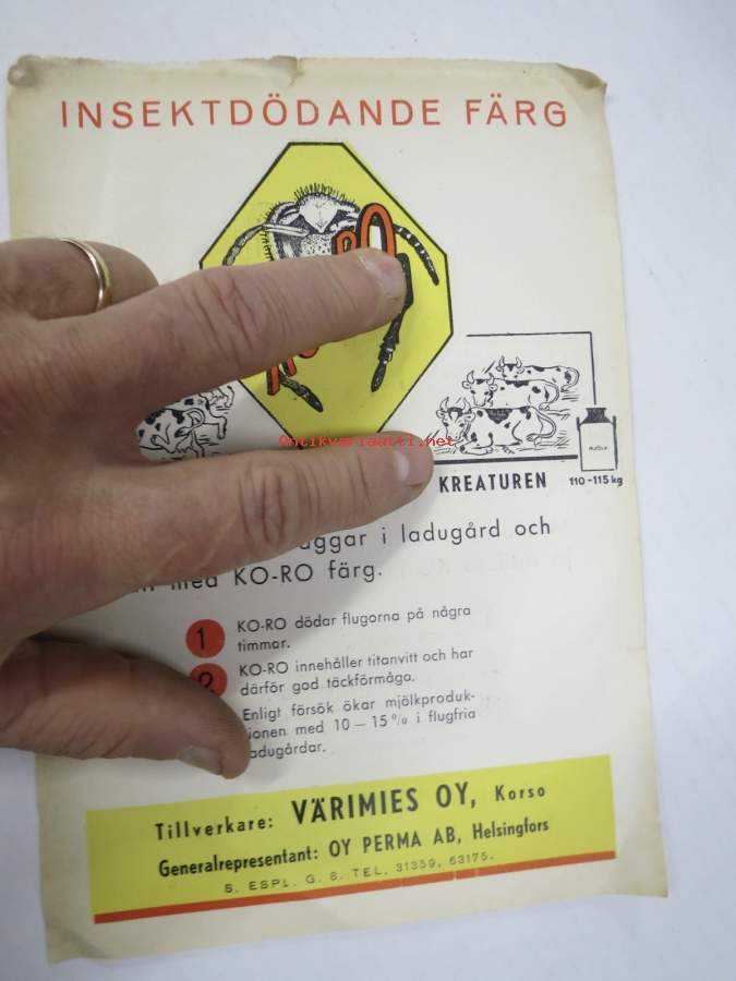 Ko-Ro - Hyönteisiä tuhoava väri - Värimies Oy, Korso -hyönteistuhopaperin myyntiesite