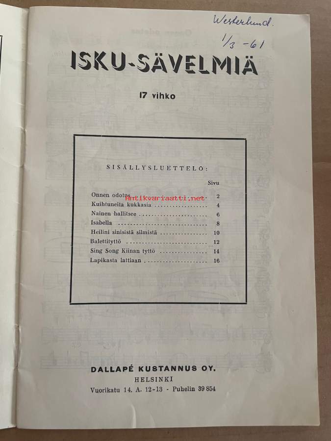 Dallapé Kustannus Oy, 193815 x 21 cm kirjanen.