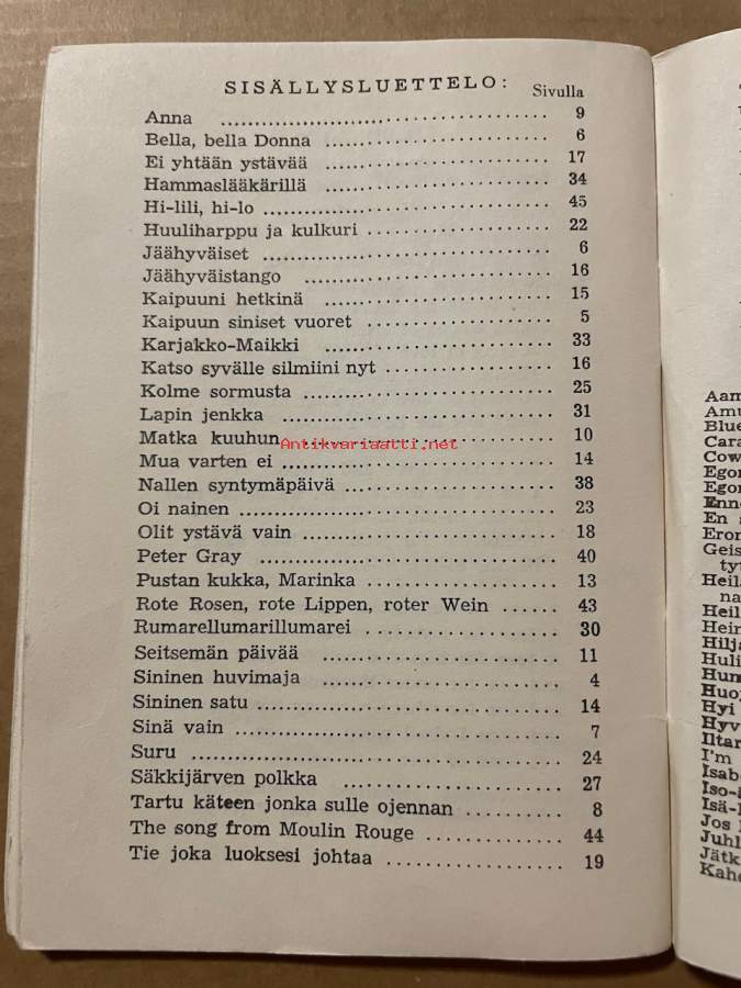 | Saatavilla | 1 kpl | | Julkaisuvuosi | 1954 | | Sivuja | 54 | | Kunto | K2 | | Sidonta/painoasu | Nidottu (pehmeäk.) | | Kielet | Suomi |